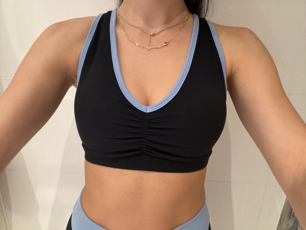 Honestly the best sports bra I own - it’s super comfy (perfect tightness) and sooo flattering. I love it. Works perfectly under the Otia top. I’m in a S (32C) and I’m just over 5ft2